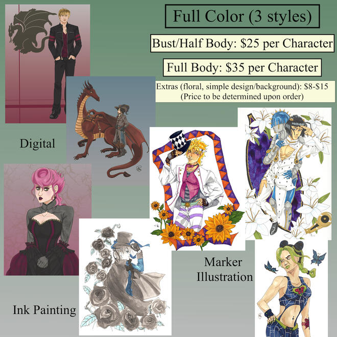 If you're looking to commission me, check out the menu below!
